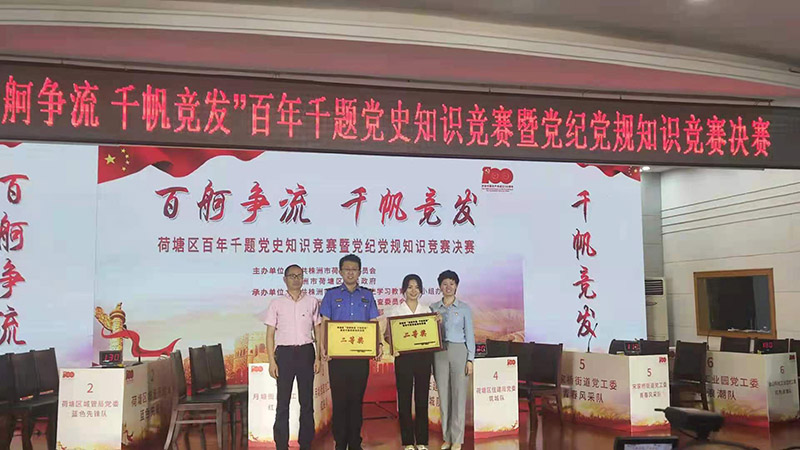 株洲市醫藥有限公司黨支部成員,周暉同志和郭曼娜同志與金山科技工業園的另外兩名同志一起組隊,代表金山科技工業園黨工委參加荷塘區舉辦的黨史知識競賽,最終以第二名的優異成績,榮獲荷塘區黨史知識競賽二等獎。