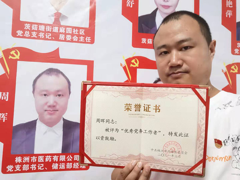 2021年,株洲市醫藥有限公司黨支部書記周暉同志,被荷塘區組織部評為“優秀黨務工作者”。