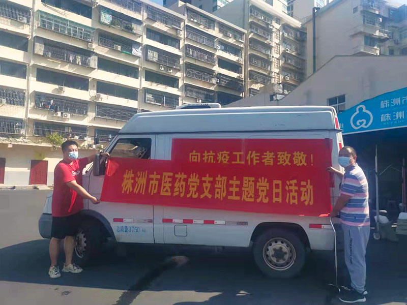 2021年,8月。新冠疫情突襲株洲,株洲市醫藥有限公司黨支部迅速反應,拉起防線。在保障自身防疫的同時,大力支持了一線的疫情防控單位,為其保障必要的防疫物資和藥品的配送。8月正值盛夏,為了讓穿防護服的醫護人員更加舒適,黨支部組織了為株洲市區內八家醫院送冰塊的主題黨日活動,獲得了醫護人員的一致好評。